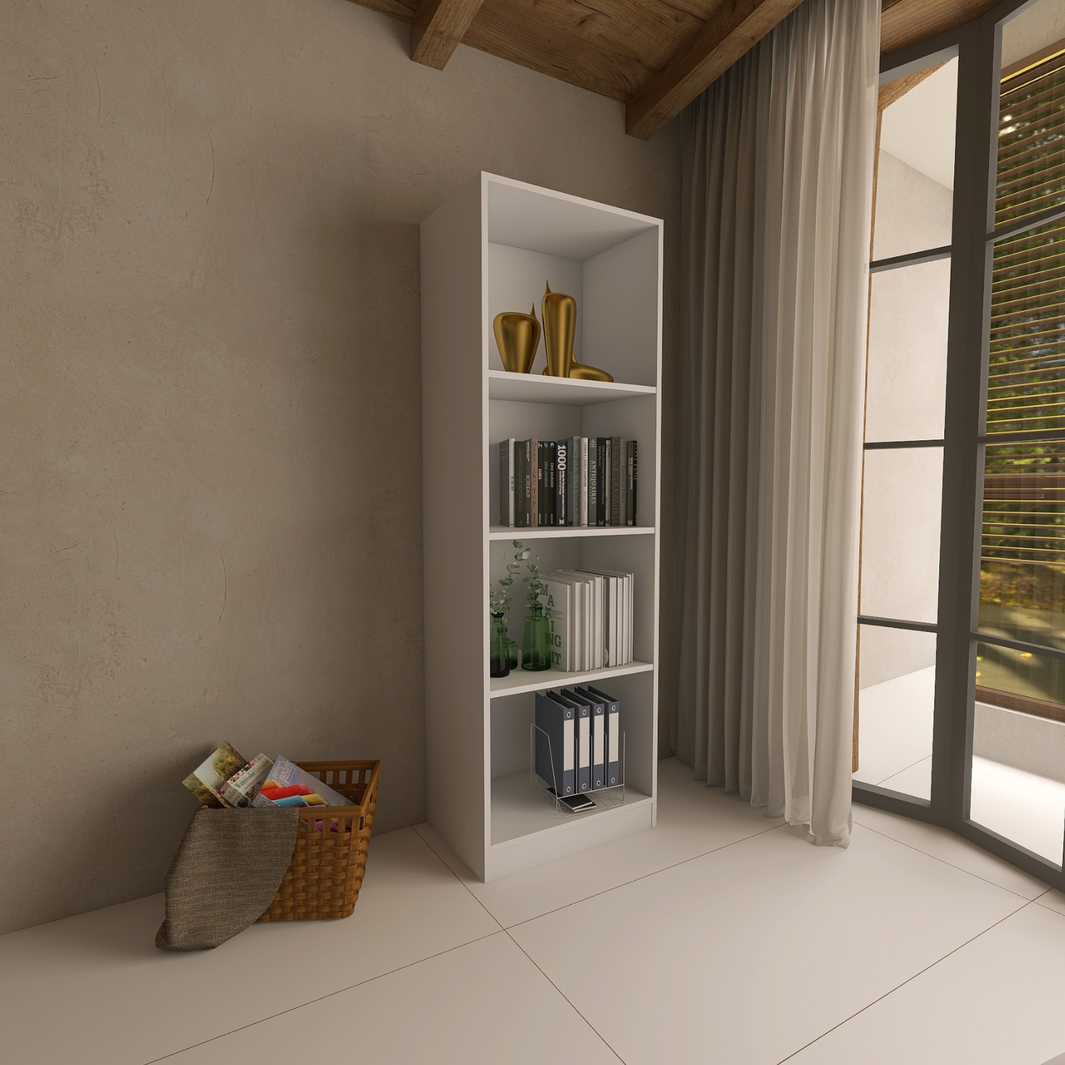 Bibliotecă pentru living, realizată din PAL de 18 mm, solidă și rezistentă în timp. Finisajul alb oferă un aspect modern și elegant, potrivit pentru interioare contemporane.