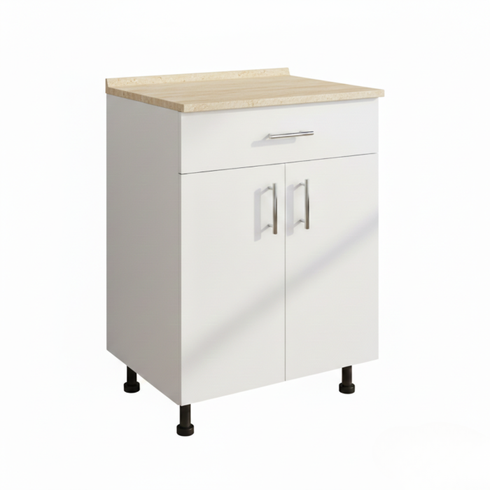 Corp Inferior Bucatarie cu Sertar, PAL 18 mm, H90 x A50 x L60 cm,Culoare Alb, Blat Termorezistent 2,8 cm