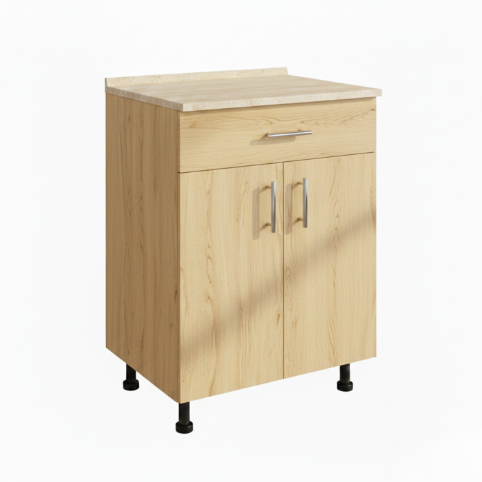 Acest corp inferior este gandit pentru a sustine activitatea zilnica din bucatarie: depozitare eficienta, rezistenta la greutate si comportament excelent in medii cu abur sau variatii de temperatura. Constructia rigida previne deformarile in timp, iar blatul ofera o suprafata de lucru sigura si fiabila.