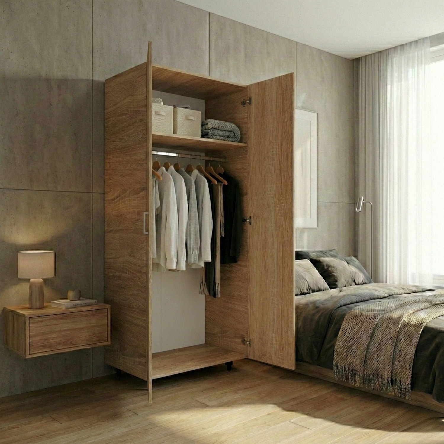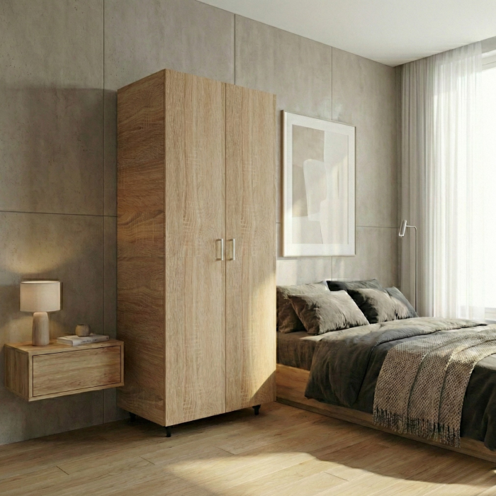 Dulap cu bară pentru haine, realizat din PAL de 18 mm, rezistent și ușor de întreținut. Designul sonoma, simplu și modern, se integrează perfect în orice tip de încăpere – dormitor, hol sau dressing.