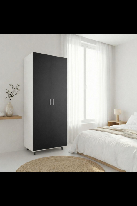 Dulapul este compartimentat cu rafturi spațioase, ideale pentru depozitarea hainelor, cutiilor sau altor obiecte personale. Dimensiunile de 200 x 40 x 80 cm permit o organizare eficientă, fiind potrivit pentru dormitor, hol sau spații de depozitare.