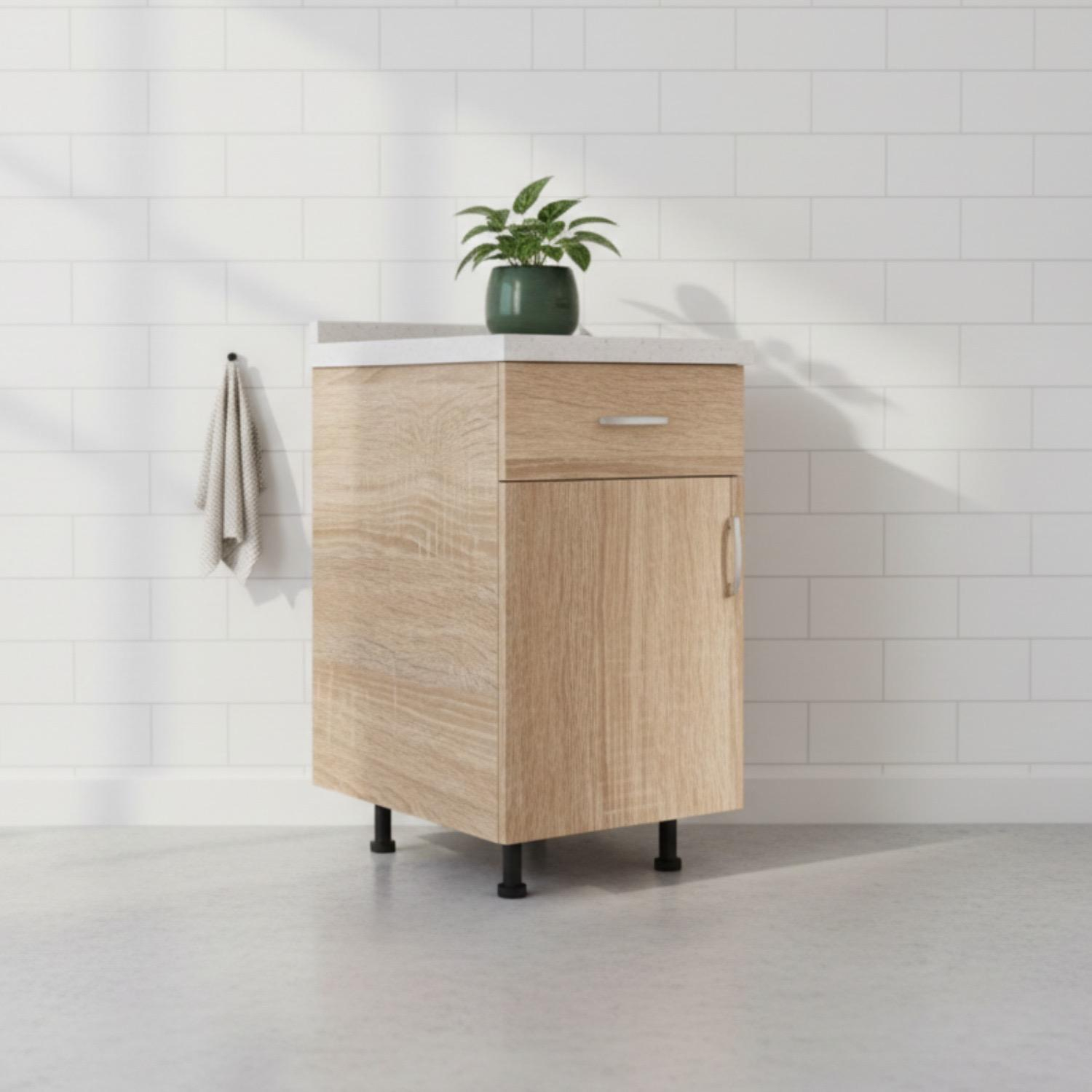 Dulap de baie, compact și funcțional, ideal pentru organizarea eficientă a spațiului. Finisajul sonoma oferă un aspect curat și modern, potrivit pentru orice tip de baie.