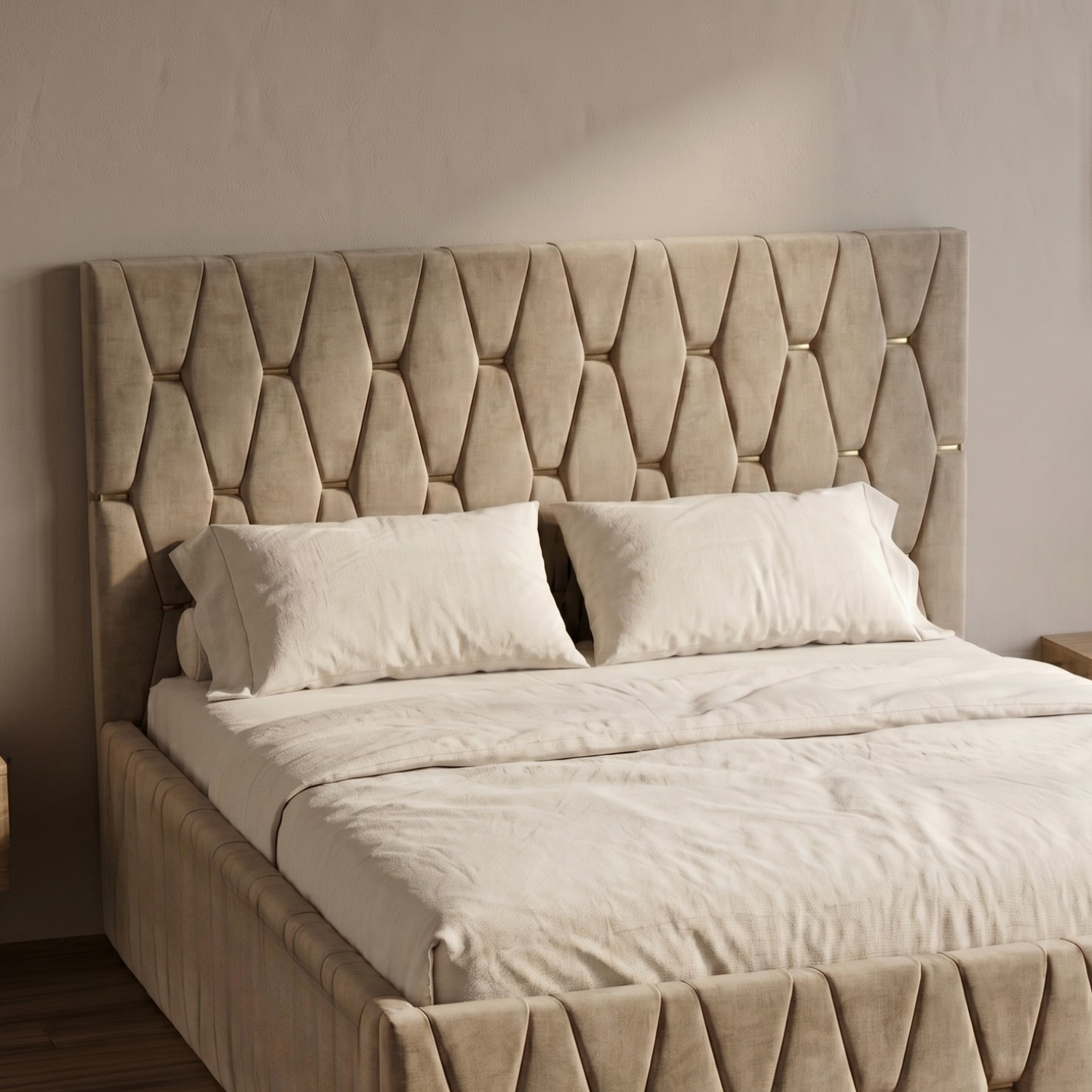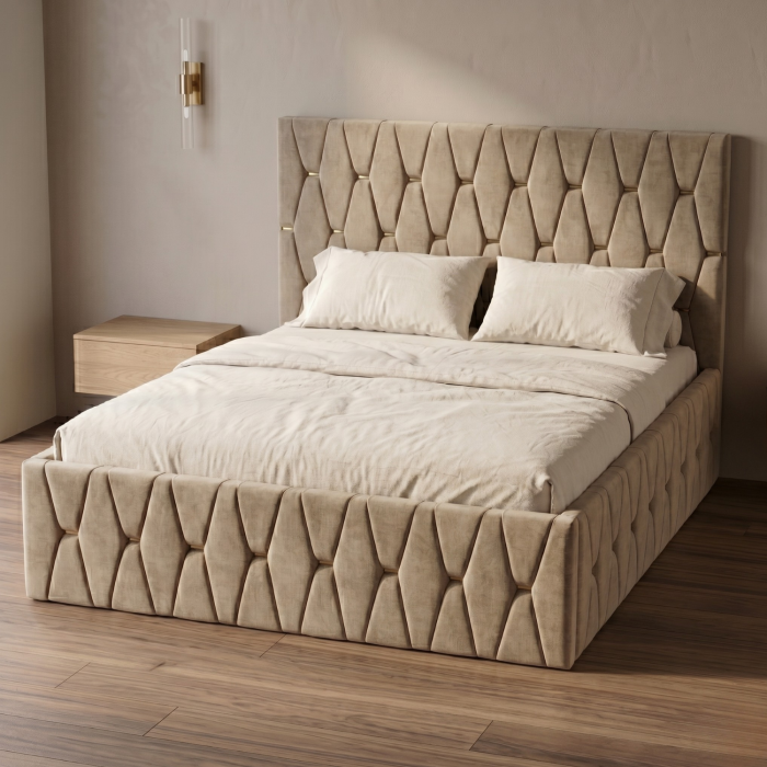 Accentele aurii atent integrate adaugă un aer luxos și contemporan, potrivit atât pentru interioare moderne, cât și pentru cele elegante. Tapițeria este plăcută la atingere, rezistentă și ușor de întreținut, asigurând durabilitate în timp.