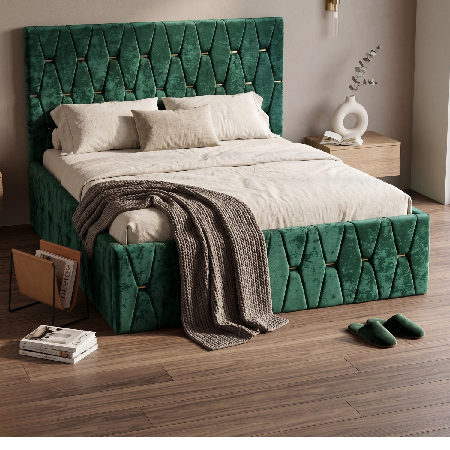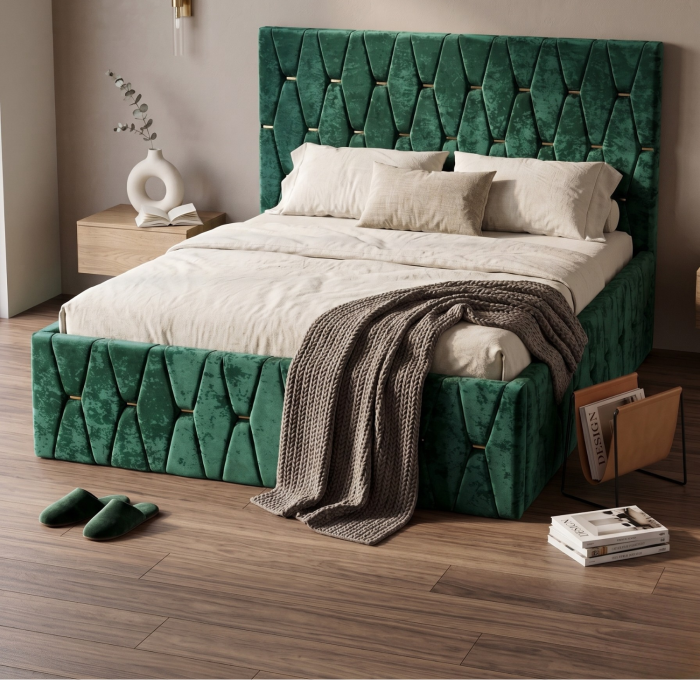 Transformă dormitorul într-un spațiu rafinat și primitor cu acest pat tapitat de 120 x 200 cm, creat pentru a îmbina designul sofisticat cu funcționalitatea de zi cu zi. Realizat din stofă de calitate premium, într-o nuanță vibrantă de VERDE, patul devine punctul central al camerei, oferind un plus de stil și personalitate.
